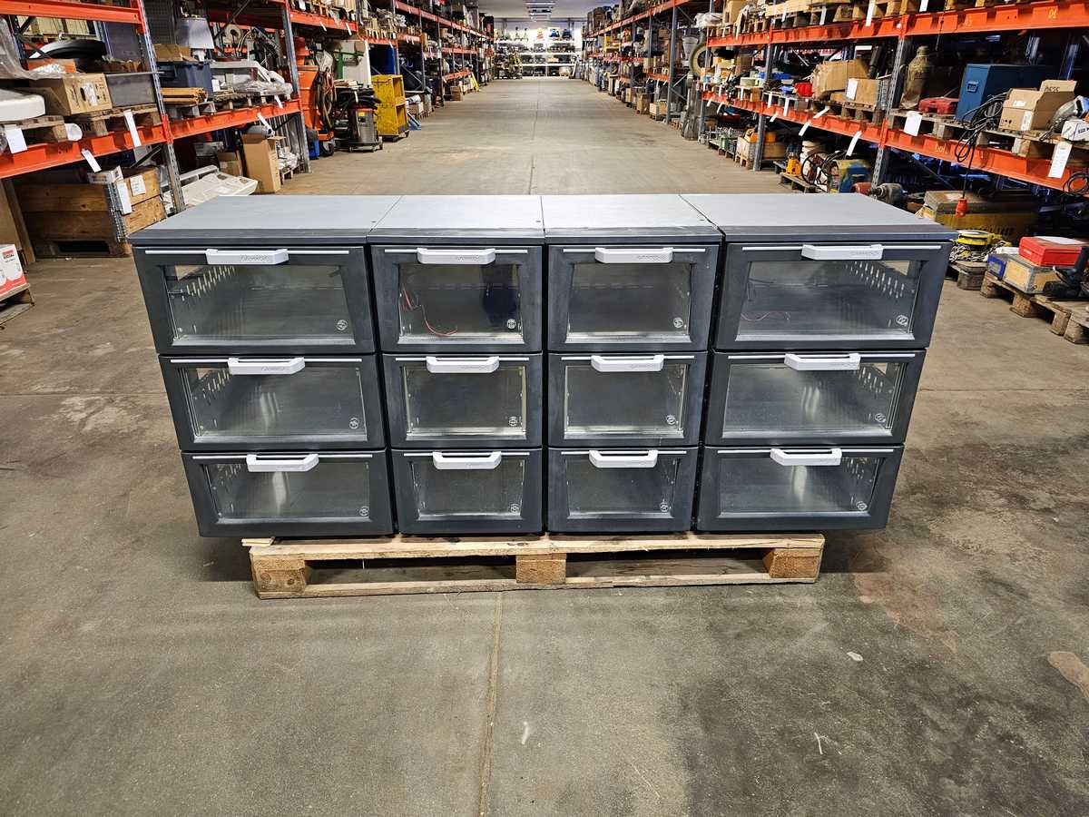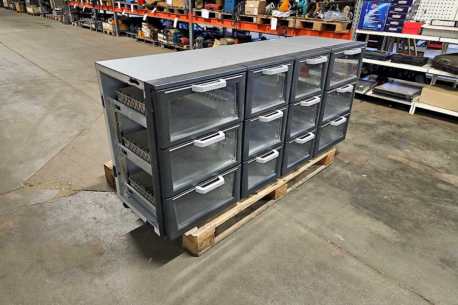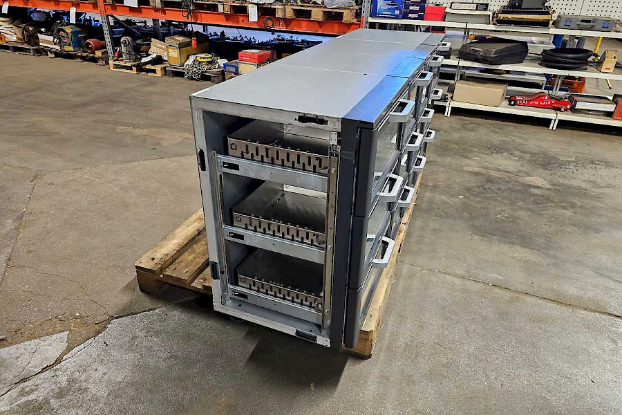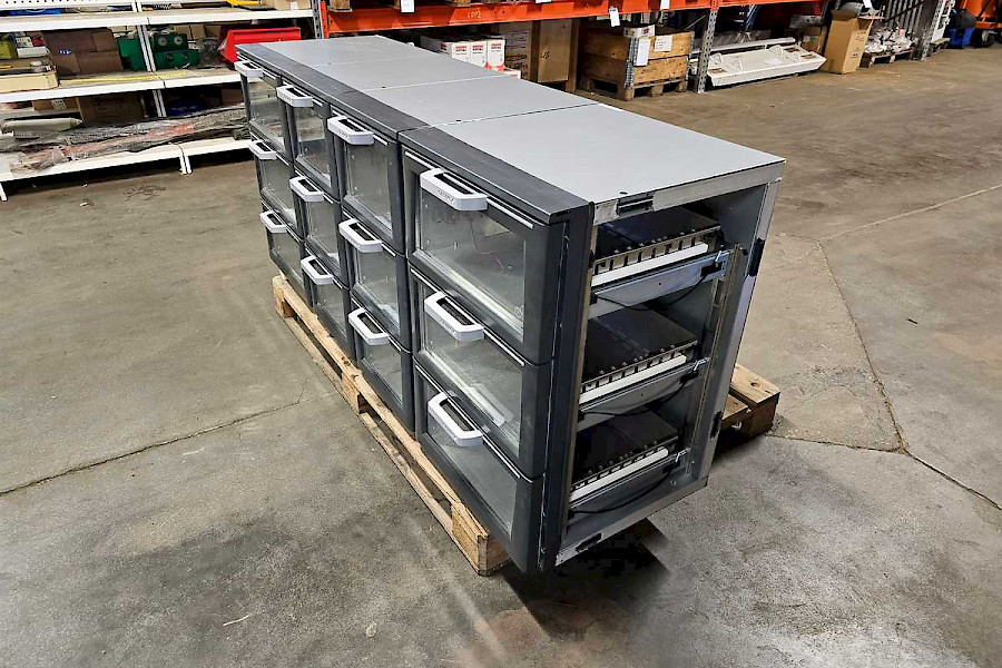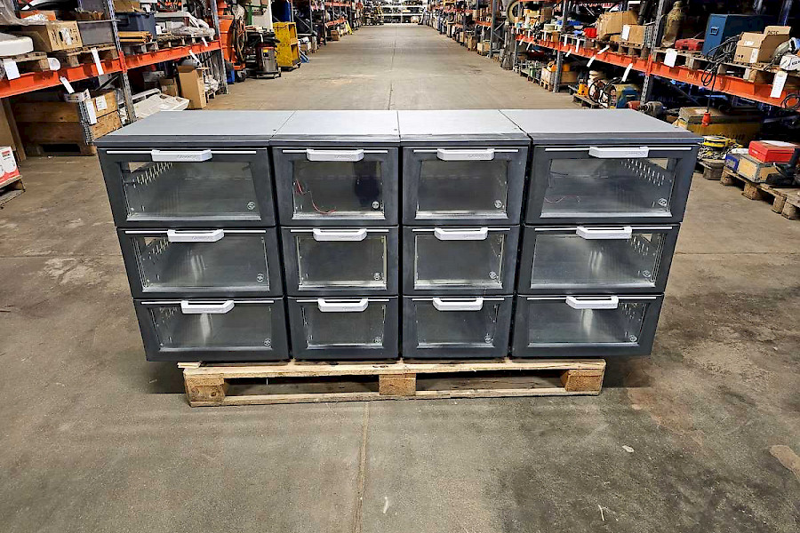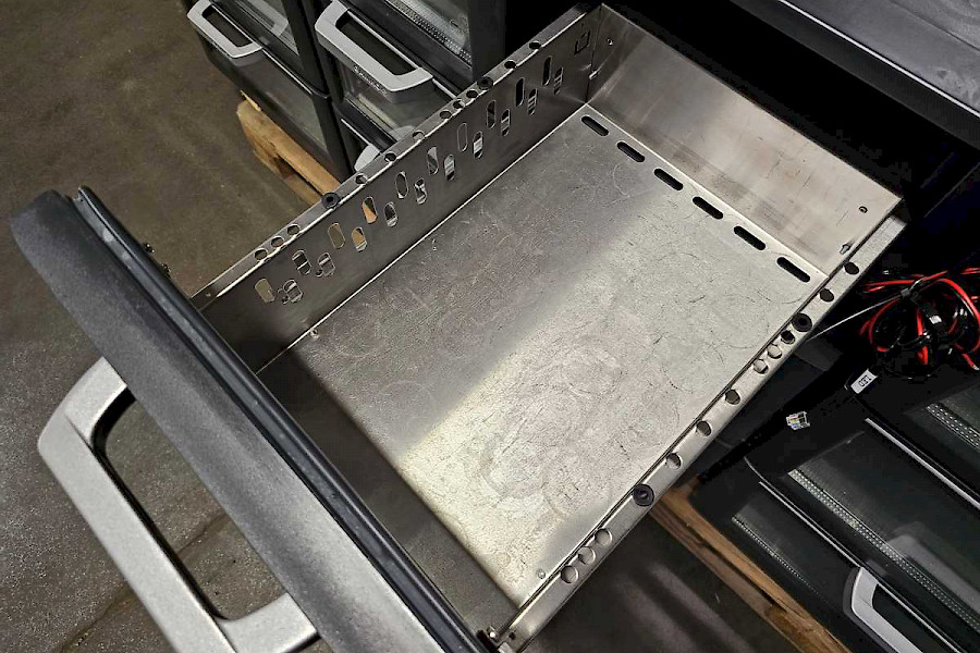 Kolme vetolaatikkoa lasiluukulla