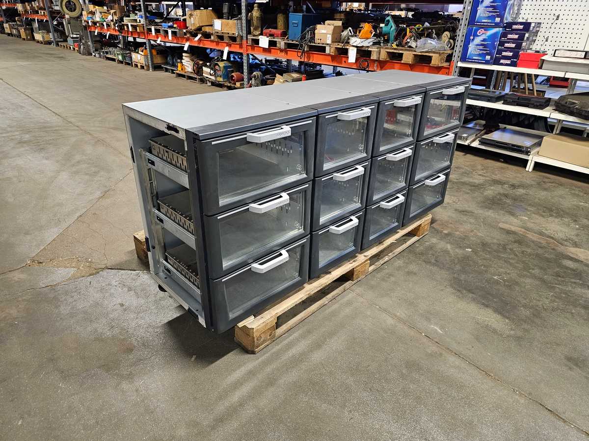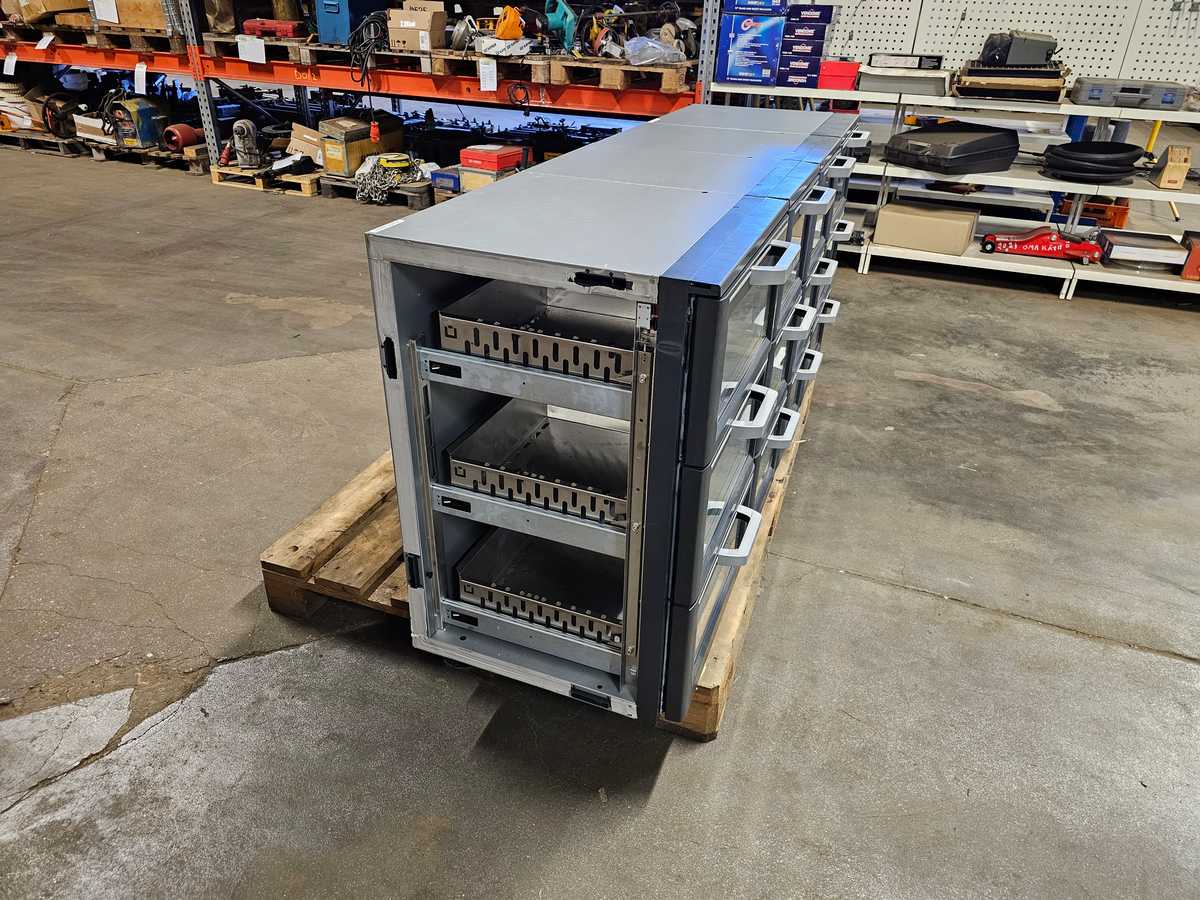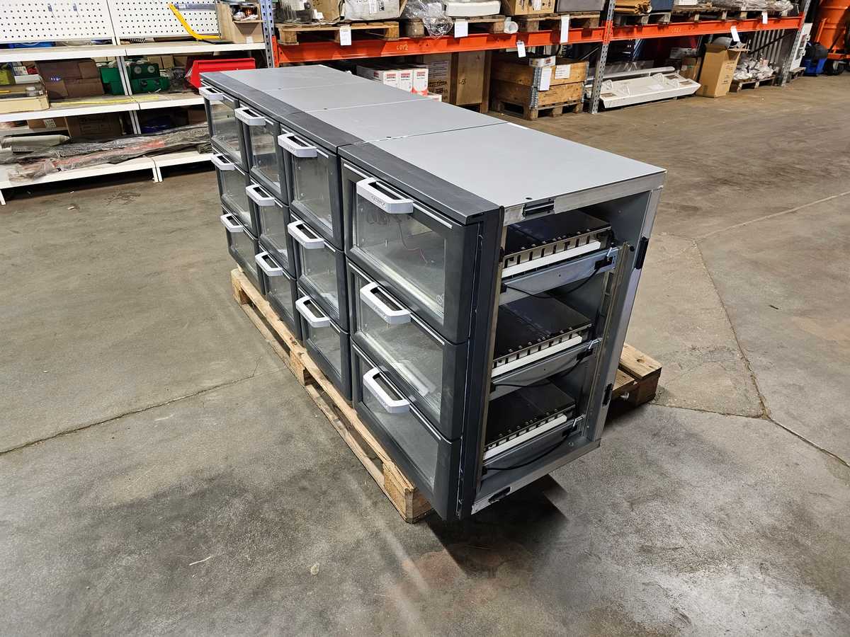 Kolme vetolaatikkoa lasiluukulla