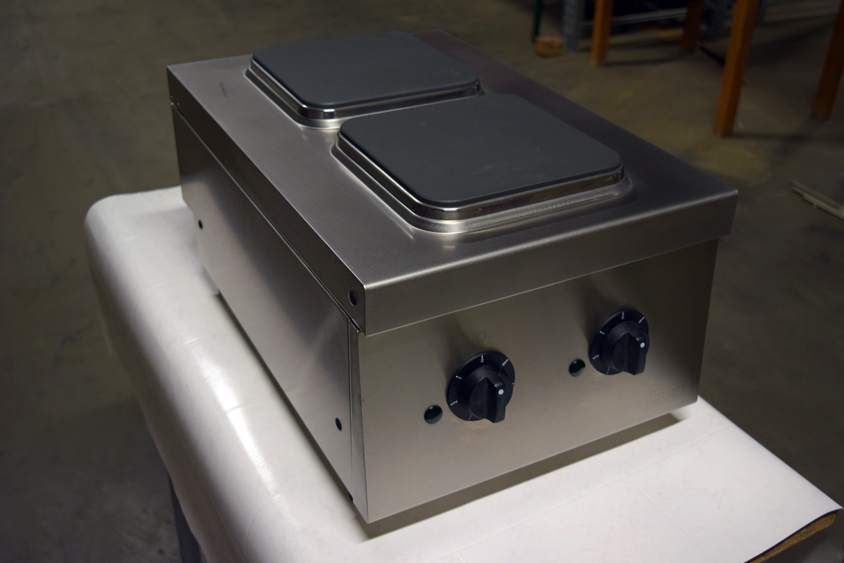 Heater installation under heavy duty cast iron hot plates.