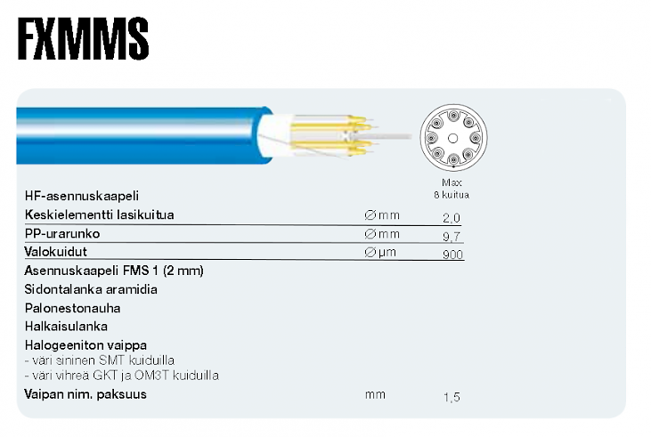 Valmis HELKAMA FXMMSU-kuitukaapeli 8GKT Pituus 120m