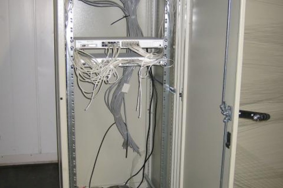 Kaapissa sisällä 2kpl 24 paikkaista Lucent M1000 Multimax Panel -yksikköä sekä 2kpl 24 paikkaisia Nortel Networksin Baystack 420-24T Switch:jä.