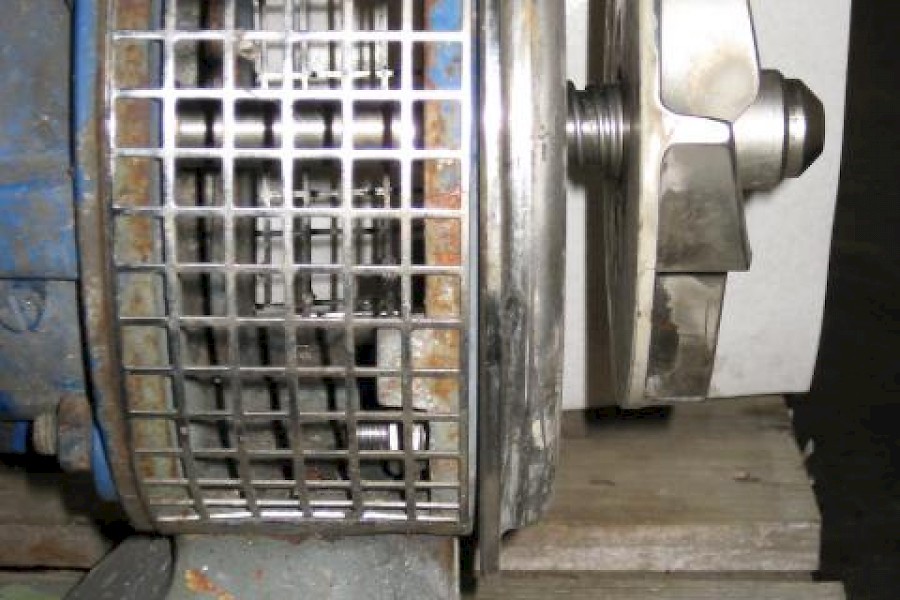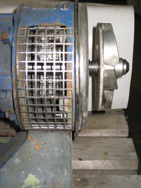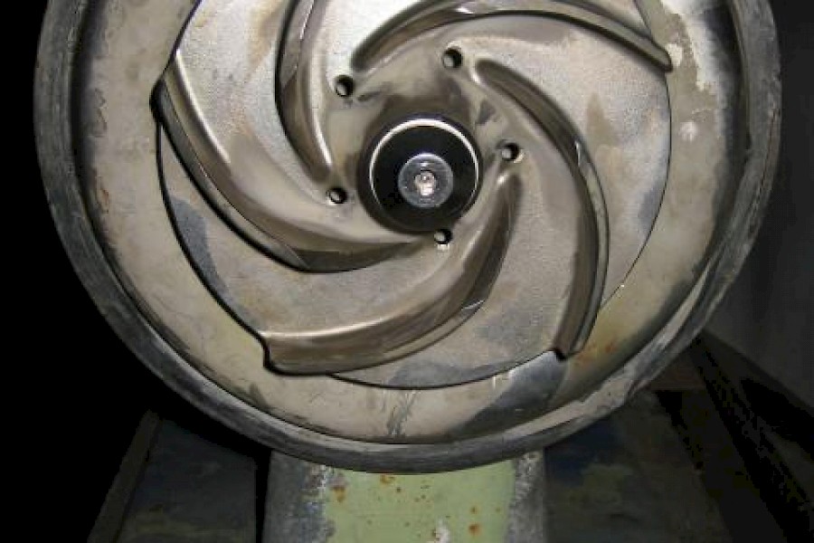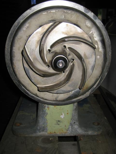 Pumpun juoksupyörä näkyvissä, pantakiinnitteinen kotelo puuttuu.
