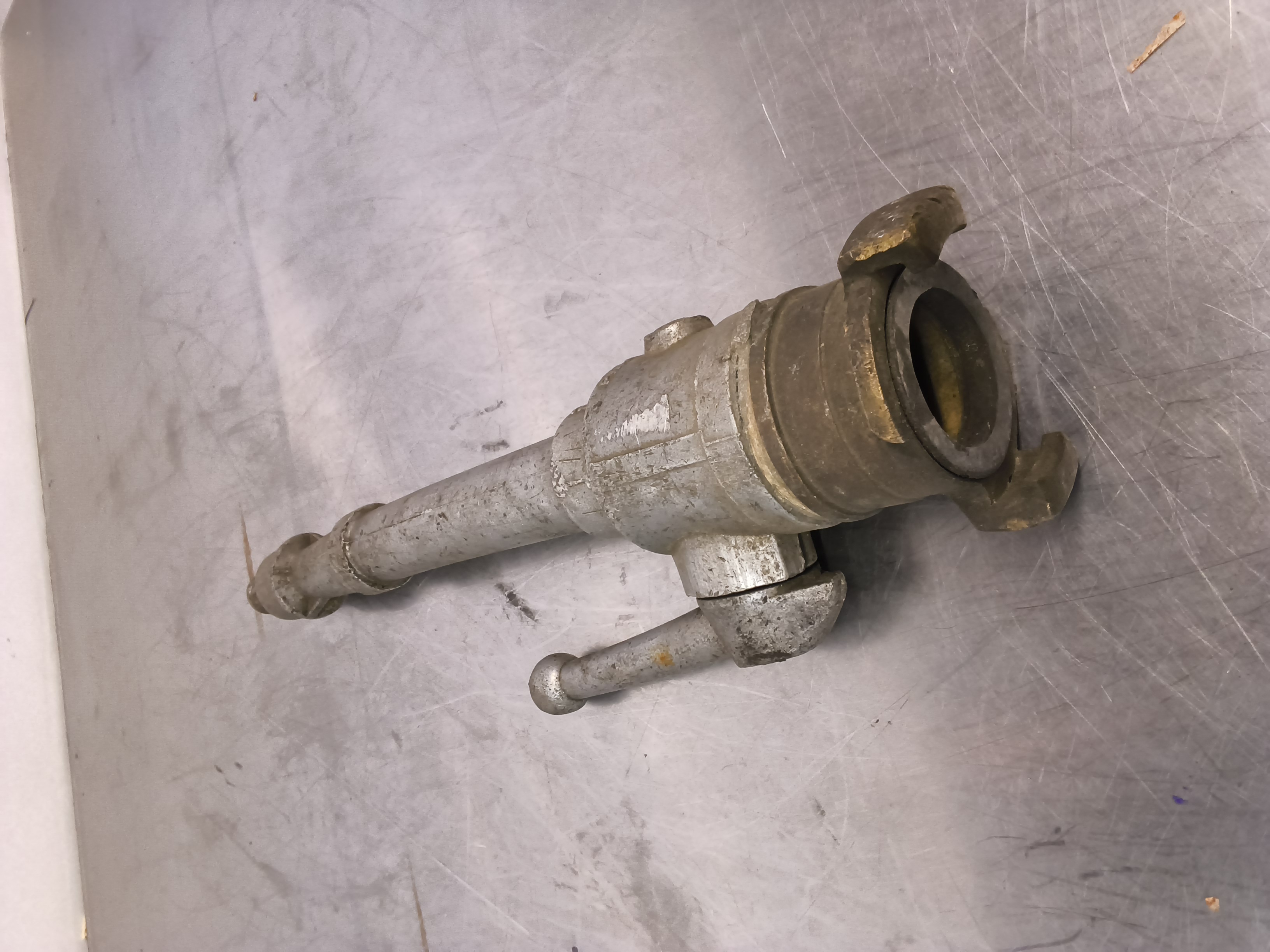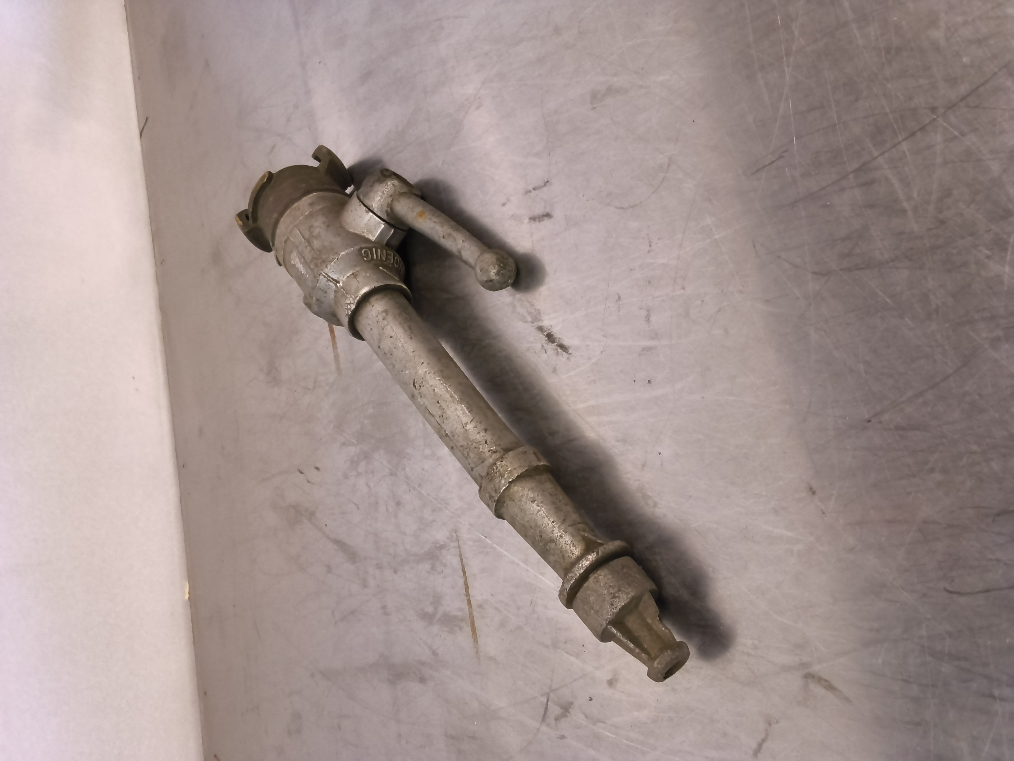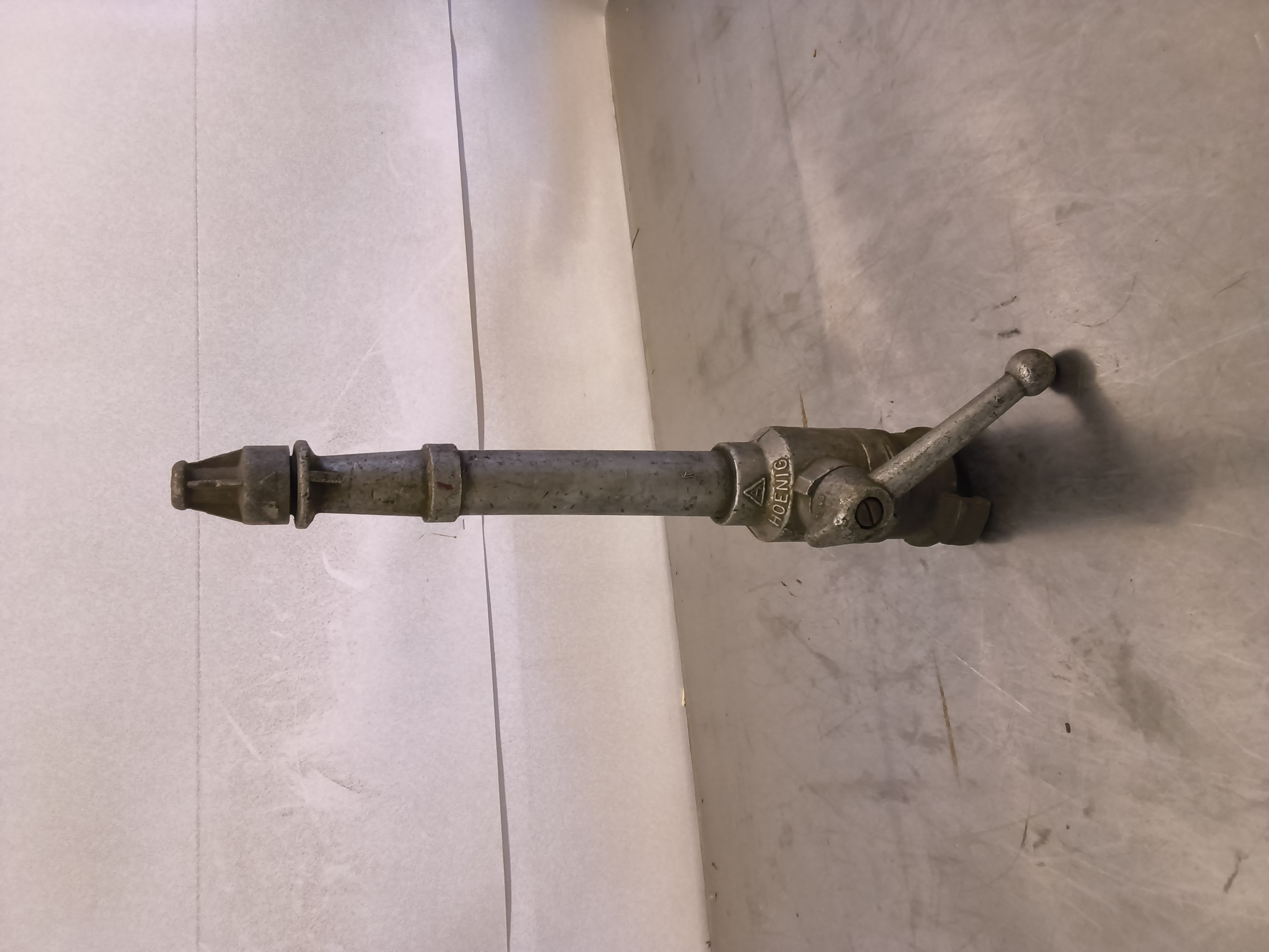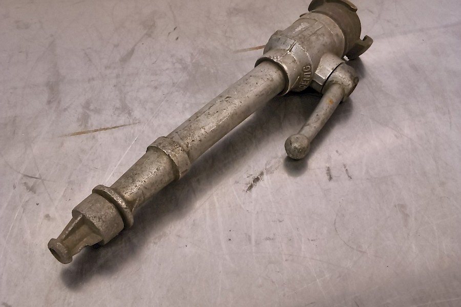 - Käyttömekanismi: Laitteessa on pitkä kahva (vipu), jolla säädetään veden virtausta tai avataan ja suljetaan venttiili.