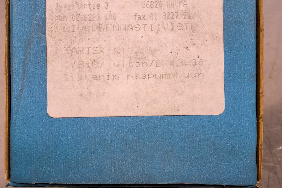 - Käyttökohde: Etiketin mukaan tiiviste on tarkoitettu ''liikkeen pääpumppuun'' (mahdollisesti aluksen tai teollisuuslaitoksen pääpumppu).