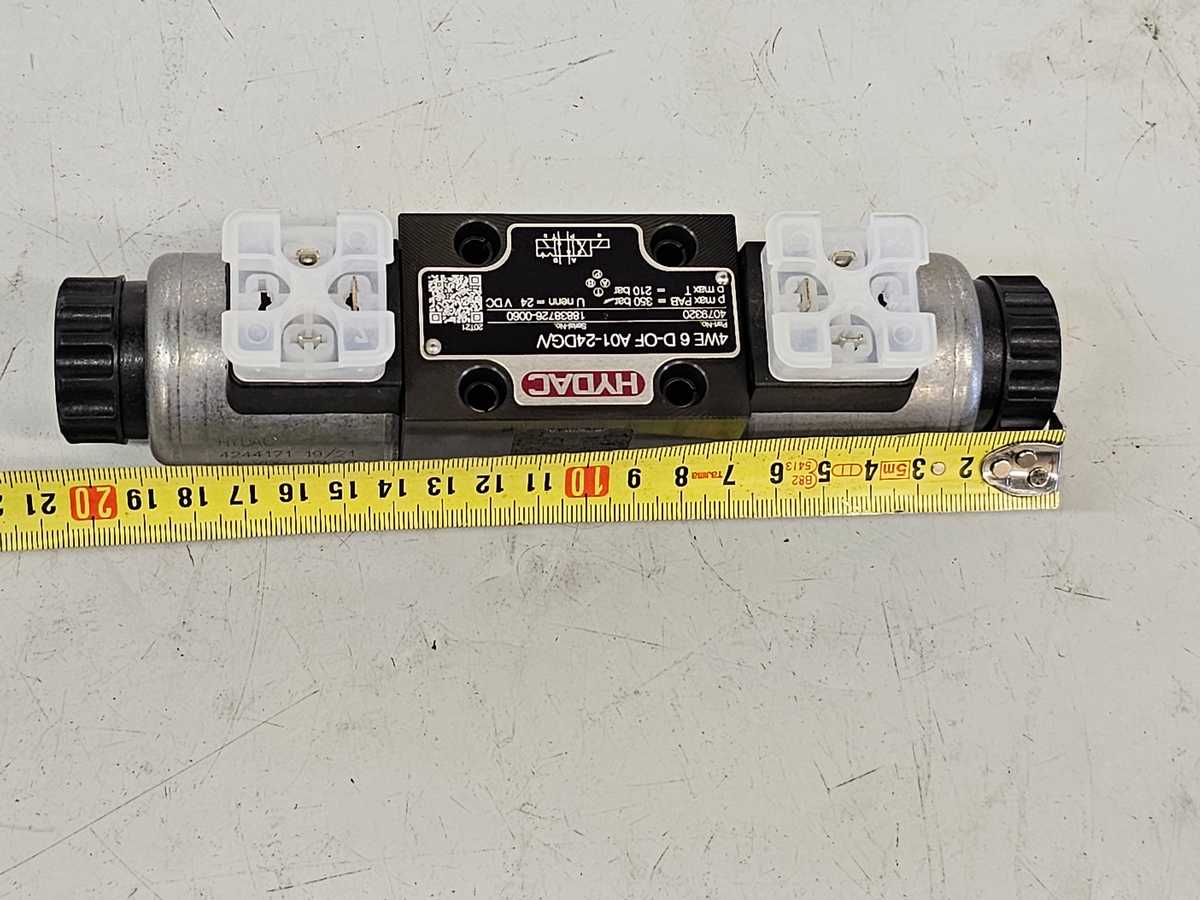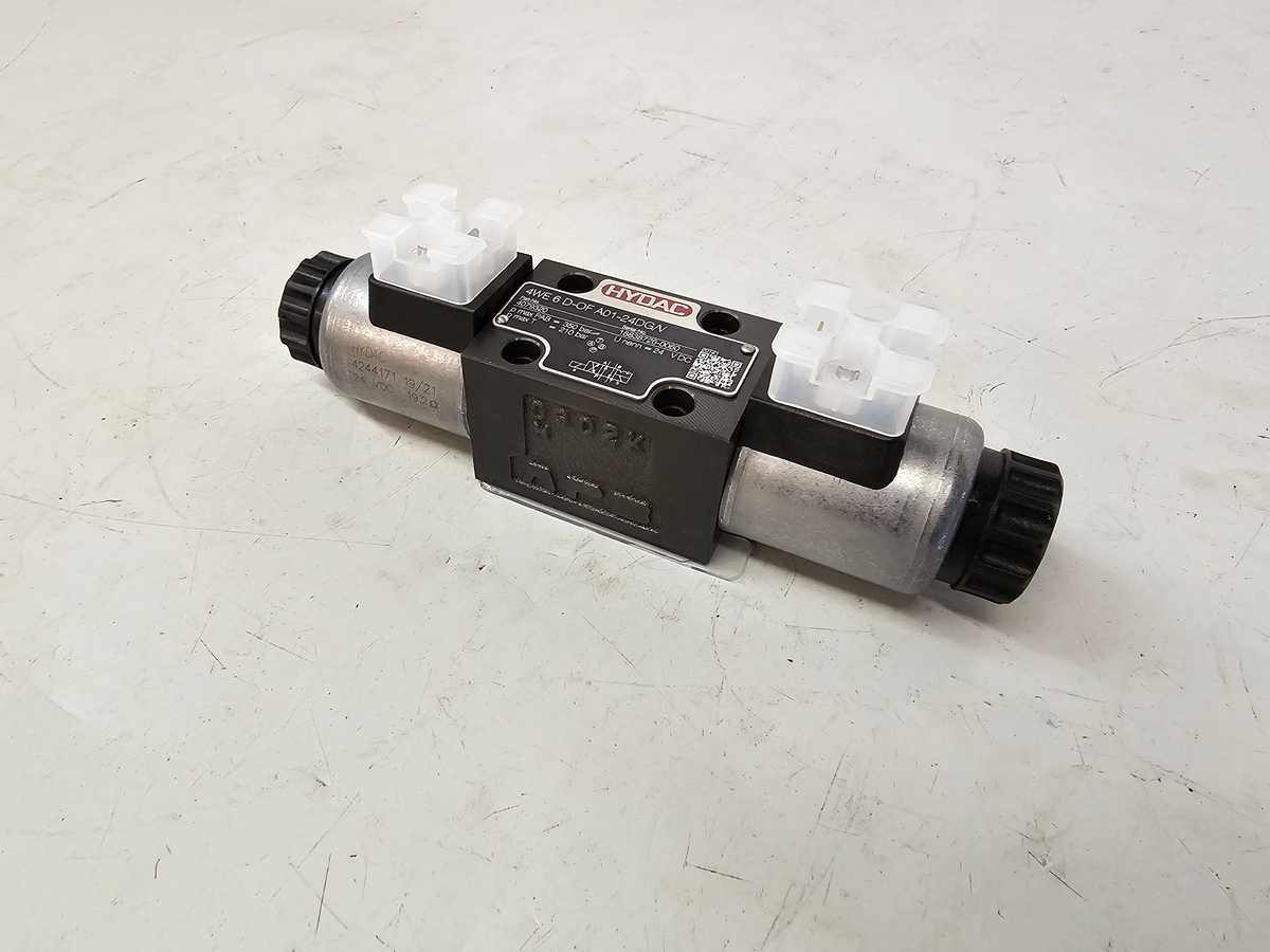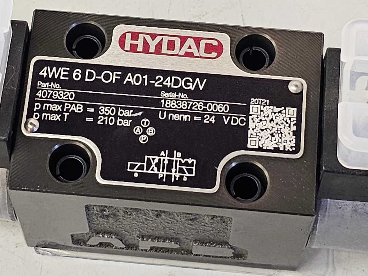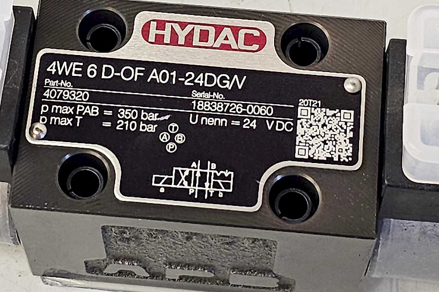 Hydac 4WE 6 D-OF A01-24DG/V -ohjainventtiili on 4-porttinen, 2-asentoinen, ohjainventtiili, jolla on maksimipaine 350 bar ja maksimivirta 80 l/min. Se on tarkoitettu hydrauliikkajärjestelmien, nostolaitteiden, kuljetuslaitteiden, valmistuskoneiden ja maatalouskoneiden käyttöön.