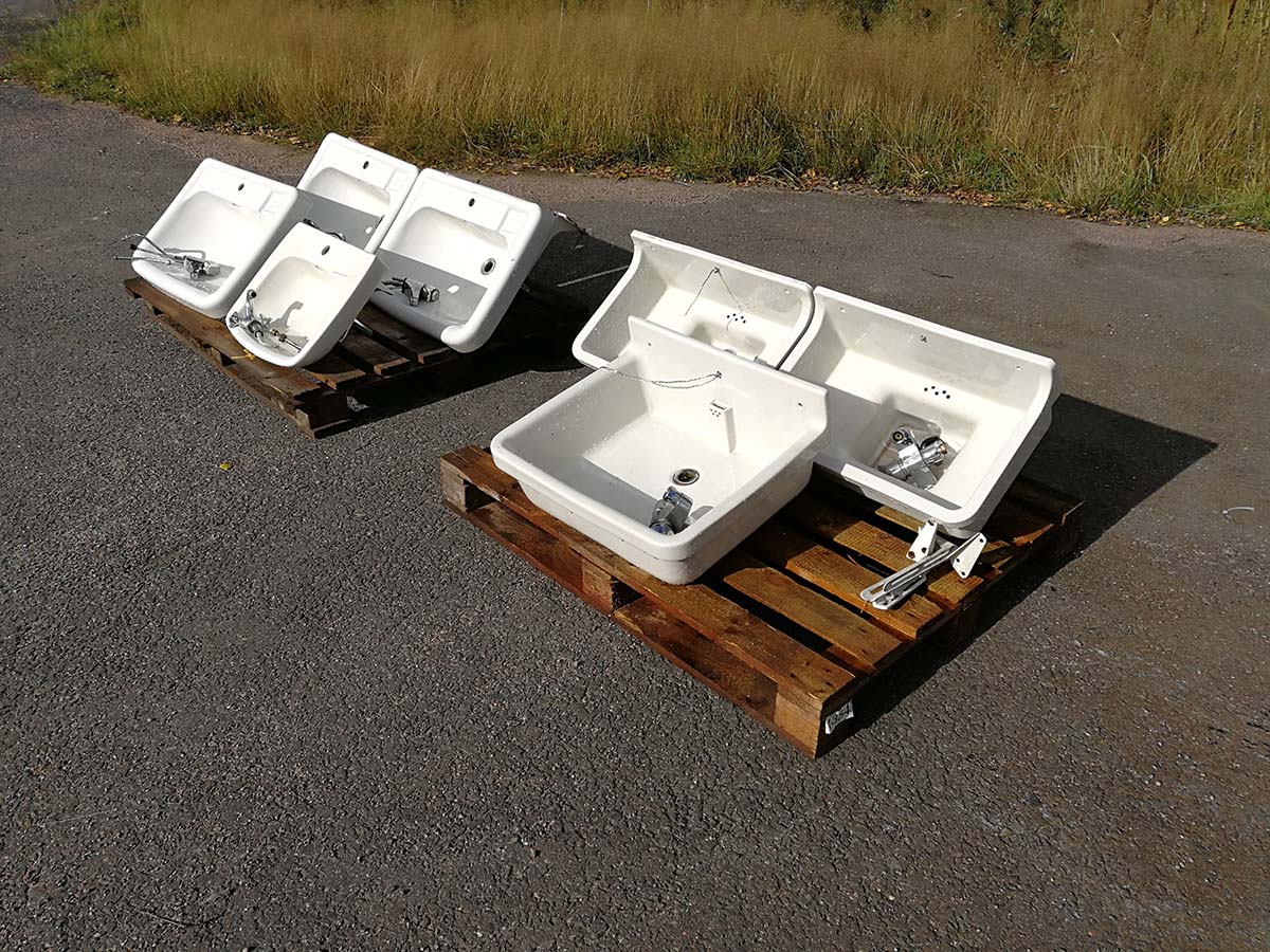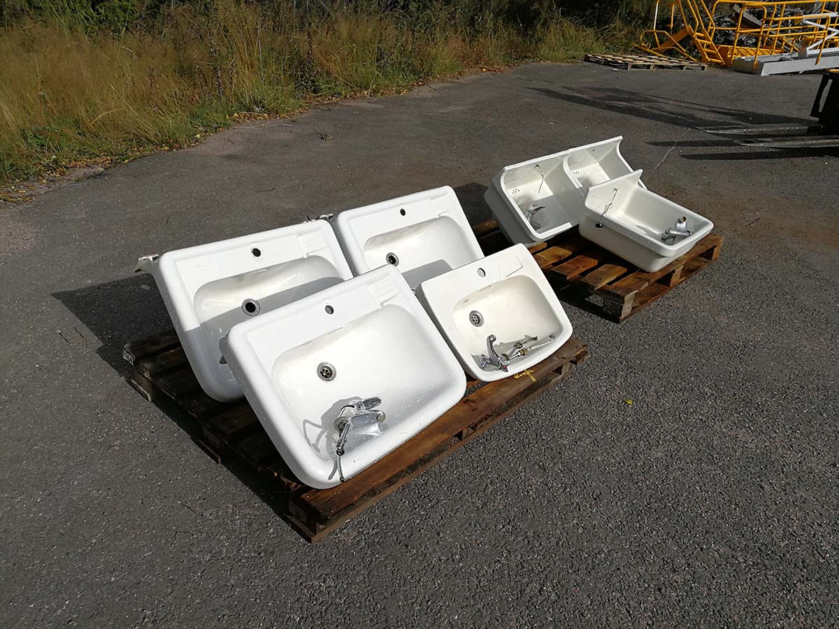 6 kpl keraamista pesualtaista hanoineen